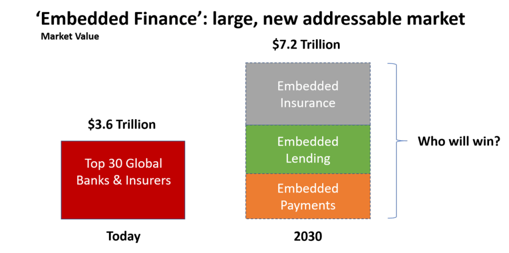 All of these are examples of embedded finance at work. Customers were not only thrilled, but the platforms also generated a new revenue source for themselves. Platforms can provide financial services — whether it’s lending, insurance, cards, or bank accounts.
